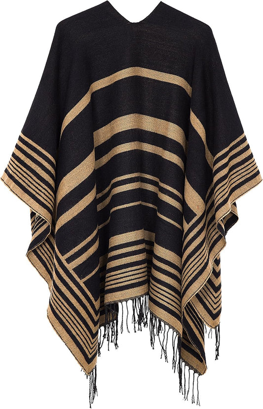 Women'S Printed Tassel Open Front Poncho Cape Cardigan Wrap Shawl