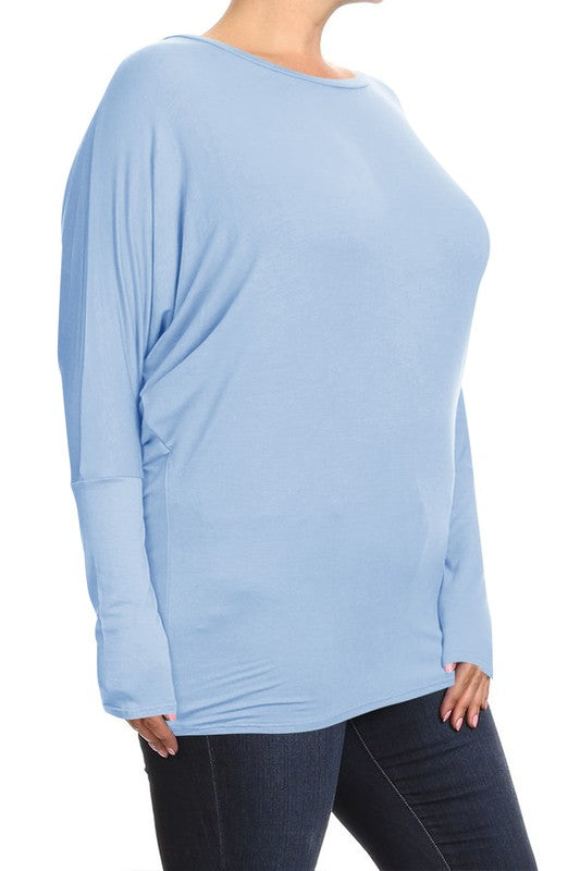 Plus Solid jersey knit Dolman top Long sleeves